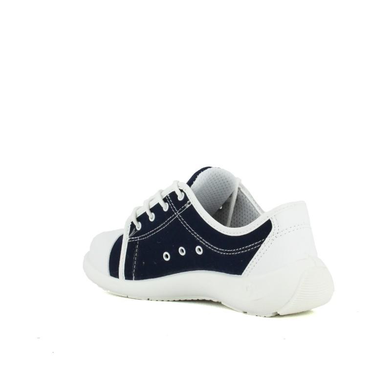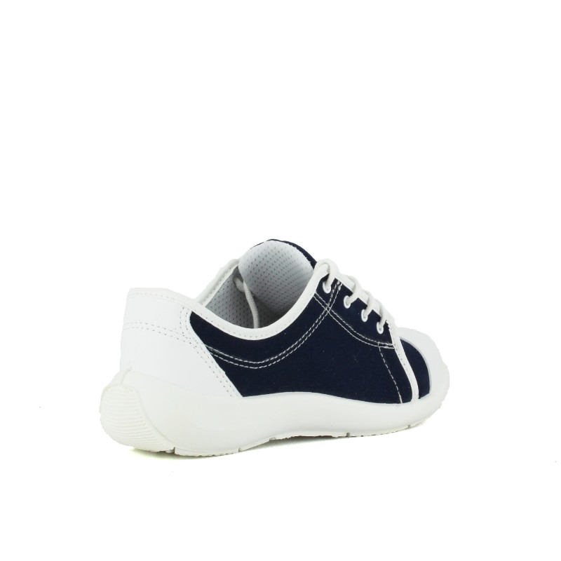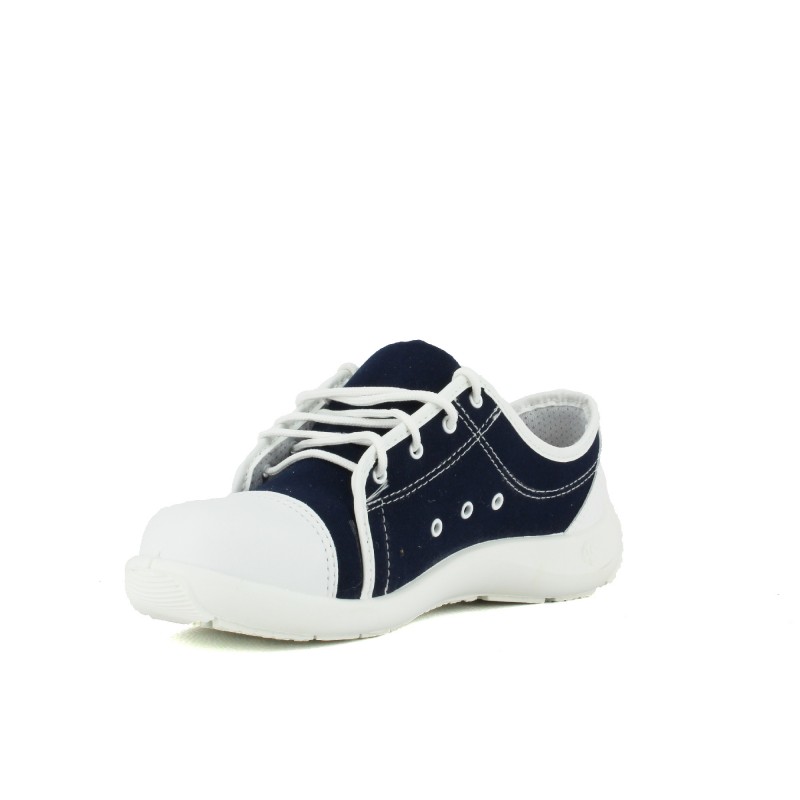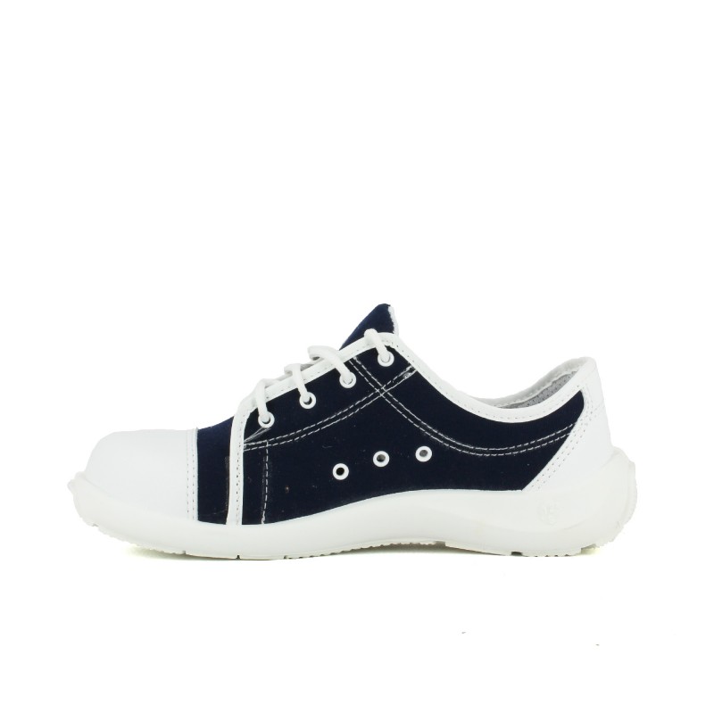 Baskets de sécurité femme en toile de couleur marine et microfibre présentant diverses qualités :