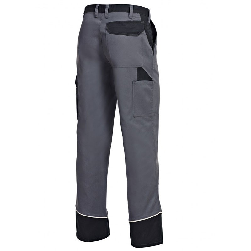 Ce pantalon de travail pour hommes possède deux poches latérales, une poche cuisse avec poche portable et une poche crayon plaquées. ainsi qu'une double poche mètre et une poche revolver fermée par rabat. Il est également équipé de passepoils réfléchissants permettent à ce pantalon professionnel de vous assurer une meilleure visibilité. Les genouillères permettent d'y intégrer des plaques de protection. De plus, la taille de ce pantalon professionnel bicolore est extensible grâce aux empiècements stretch sur les côtés. Enfin, les différentes couleurs qui vous sont proposées vous permettront de pouvoir choisir celle la plus adaptée à votre métier.
